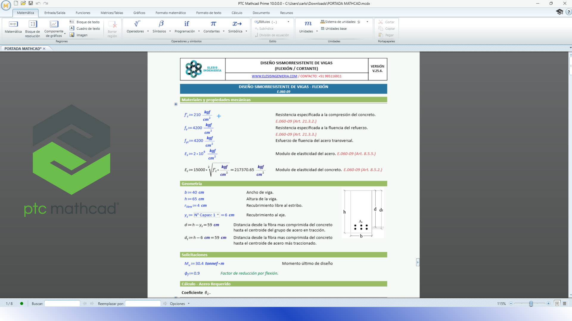 DISEÑO SISMORRESISTENTE DE EDIFICACIONES DE CONCRETO ARMADO CON ETABS V22 Y MATHCAD V11 Más Información PTC MATHCAD PRIME PARA INGENIEROS Más Información